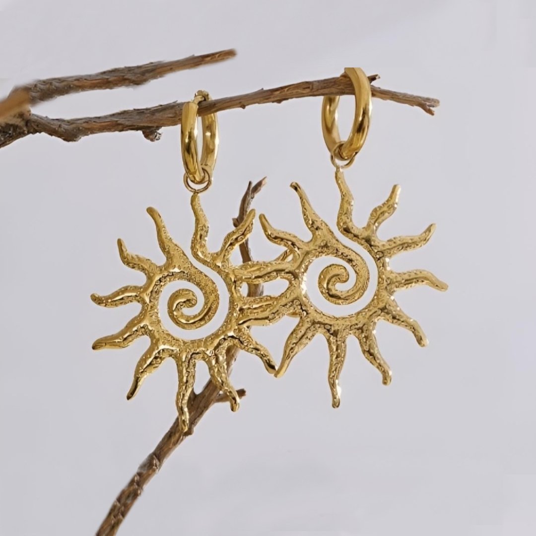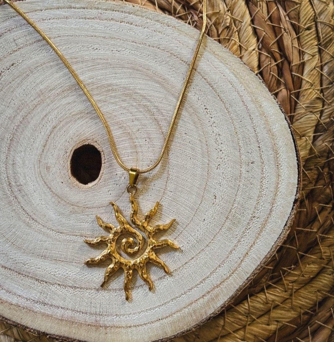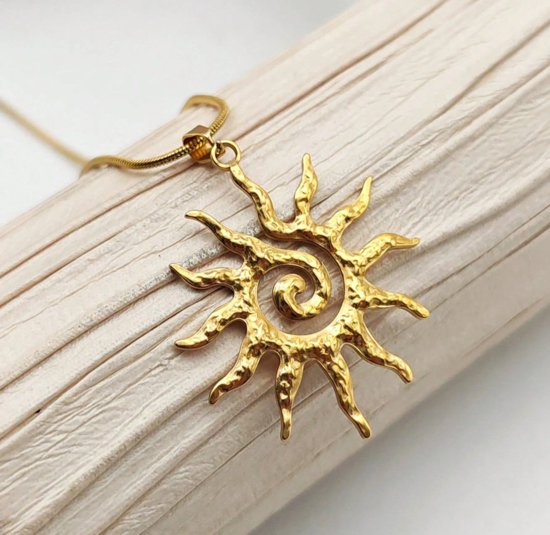 Add a radiant touch to your look with this elegant vintage-inspired sun totem jewelry set. Designed with a bold yet timeless aesthetic, the set features a beautifully crafted sun motif with intricate spiral detailing, symbolizing energy, warmth, and positivity.