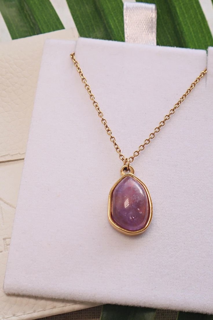 Stainless Steel Purple Natural Stone Pendant Necklace 307