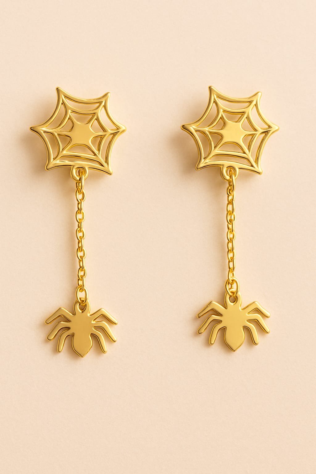 Spiderweb Earrings, Stainless Steel with 18K Gold Plating – 404