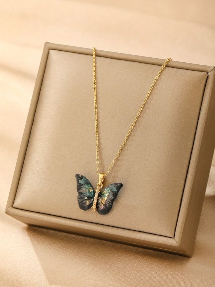 Stainless Steel Black-Colored Butterfly Rhinestone Necklace – 309